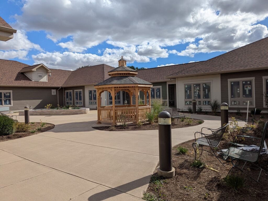 This one story addition to the existing dementia care wing of the Evergreen Place-Decatur supportive living facility offers supportive memory care with 20 single occupancy residential units. Designed in alignment with the best practices for senior living and dementia care, it features a landscaped courtyard and common areas with a home-like feel.