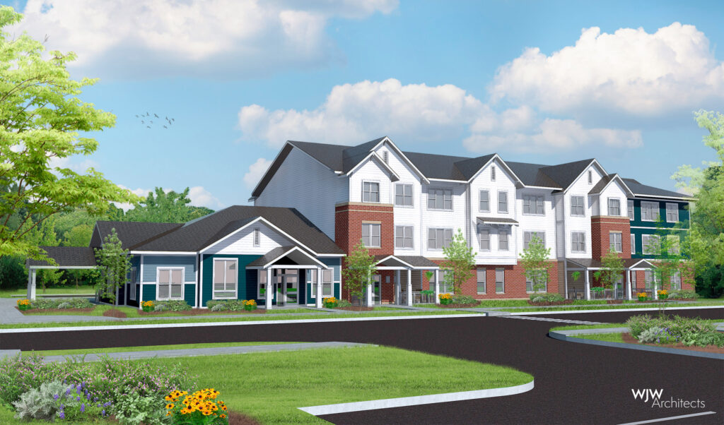 The exterior design features a combination of masonry and fiber cement lap siding in a blend of fresh, contemporary colors. Several accessible front porch features give the building a home-like feel. The site will feature landscape architecture by TWiG and sits across the street from the Hope Manor Joliet development that was completed in 2017.