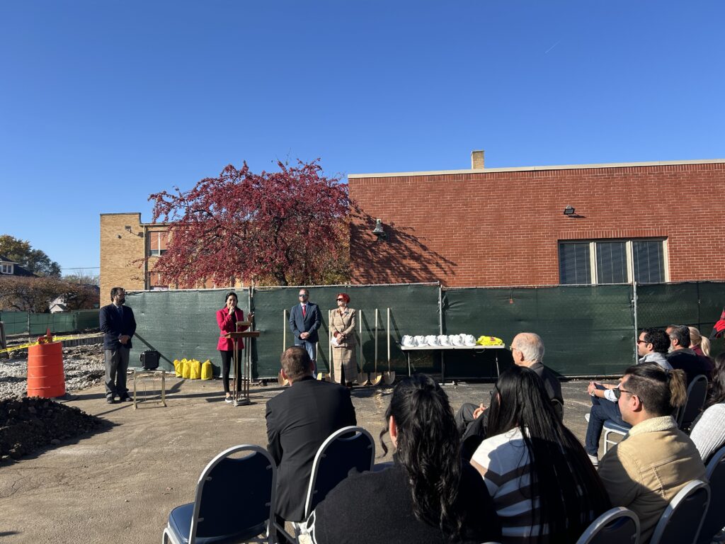 Construction has begun on the Las Rosas project in Aurora, IL! Heidi, Liezel, and Mariah recently attended the groundbreaking ceremony. This transformative project will create 20 units of permanent supportive housing located on the existing Iglesia San Pablo campus. The existing school will be converted into 10 apartment units with unique resident amenity spaces and an additional 10 apartments units will be constructed on the former parking lot. When completed residents will enjoy an indoor gymnasium with half court basketball court and community gathering space. They will also have access to an on-site bowling alley that will remain operational and open to the public as well. The development will serve clients through a collaborative partnership with AID (Association for Individual Development), The Neighbor Project, and Hesed House. Las Rosas will provide independent one- and two-bedroom apartments as well as essential resident common spaces and dedicated social service areas that support long-term stability and wellness.