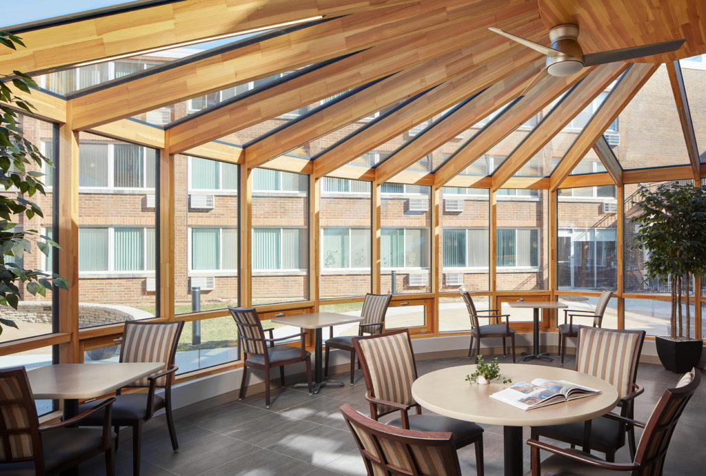 Challenges presented by the original structure were transformed into opportunities: The connection point merging the original building with the new construction was complicated, requiring the navigation of pre-existing elements including a terrace and exit stairwell. Our solution? A one-story connector with a solarium and bistro, creating not only a bridge to the new wing but a standout design element that has now become the heart of the community.