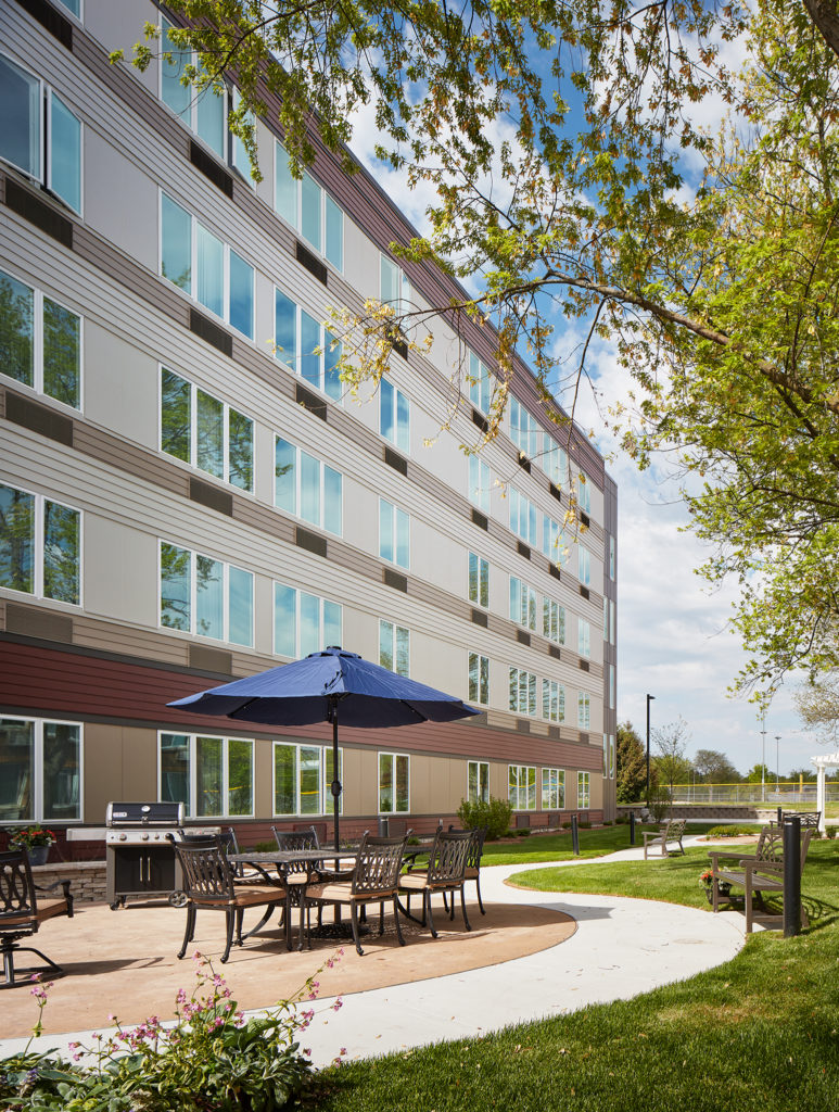 The larger, upgraded housing community was designed with the environment in mind; both the existing structure and addition will achieve National Green Building Standard certification. Access to nature was top of mind, too — a new courtyard will allow residents to enjoy grilling, lounging, al-fresco dining and gardening, completing the design with amenities and compelling details that offer a comfortable home and elevated design to a community in need.