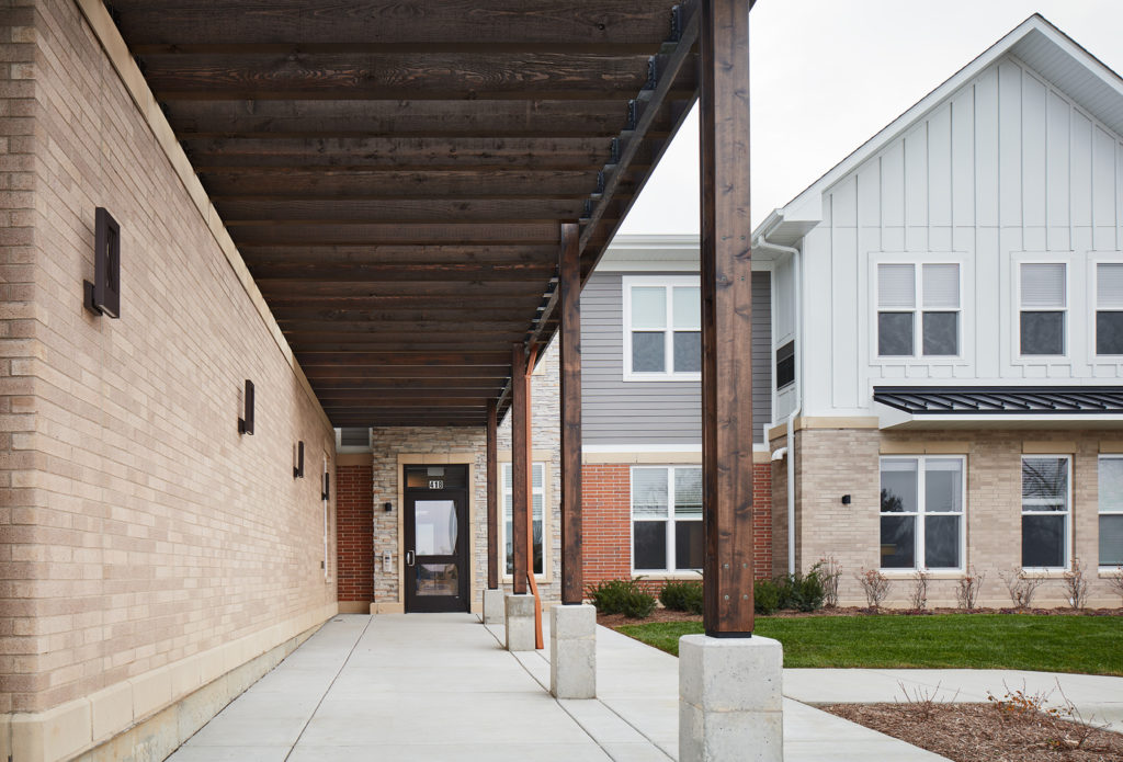 Intelligent, careful site planning at Prairie Trail allowed for optimization of available space, creating room for a range of amenities that includes resident common areas and activity spaces as well as counseling offices and fully functioning outdoor spaces.