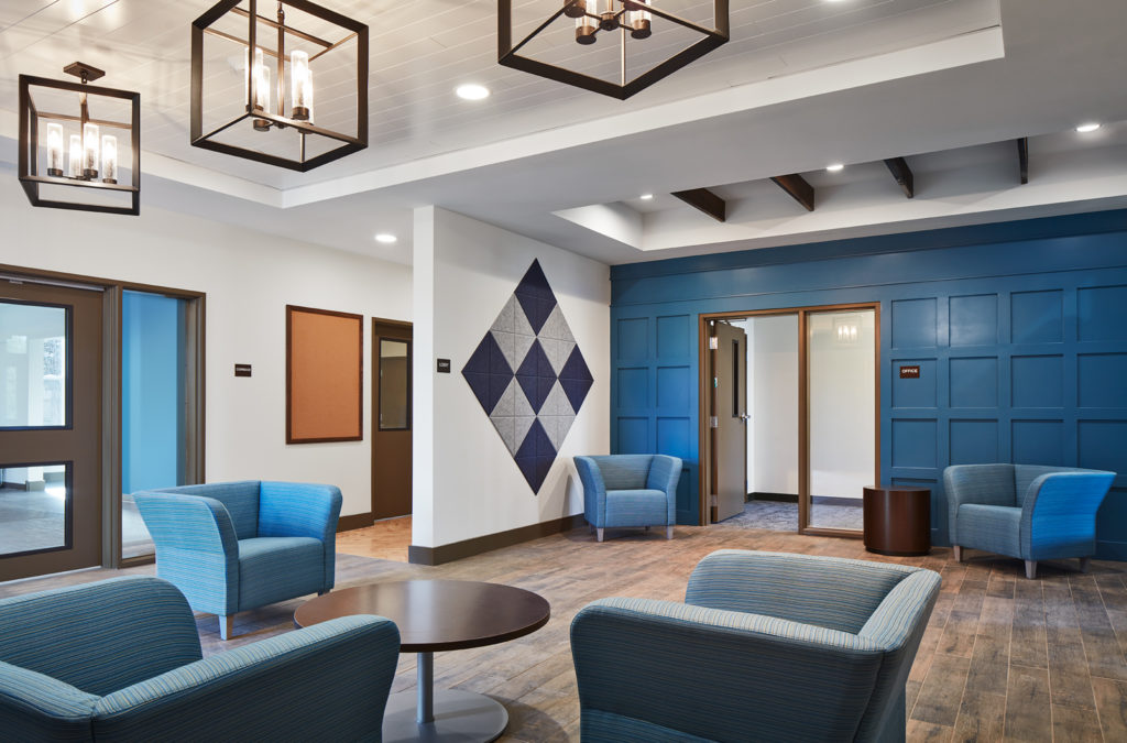 Interior common spaces at Prairie Trail include use of color, details and even artwork to reference the surrounding community and create a sense of place.